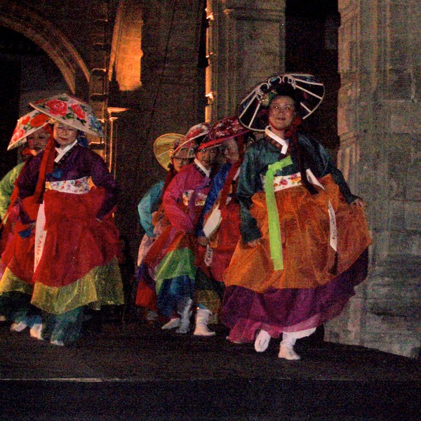 Ein Feuerwerk von Farben und Klängen wurde uns am Gala-Abend beschert, der im Innenhof des ehemaligen Klosters San Hippolitto stattfand, zu dem wir aus Sicherheitsgründen trotz nur 10-minütiger Gehdistanz unter Polizeischutz mit Cars hingebracht wurden. Blumen, Kerzen und reich dekorierte Tische erwarteten uns, und mittendrin ein grosser Brunnen, auf dessen Wasser Tausende von Blütenblättern schwammen.