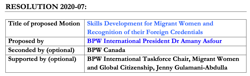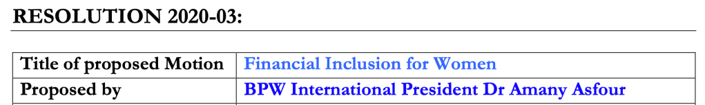 Infolge der virtuellen Durchführung der Generalversammlung von BPW International musste das Programm gekürzt werden. Es wurden die notwendigen Anträge (Resolutions und Amendments), die Wahlen sowie die Jahresrechnungen und das Budget behandelt; die Bearbeitung der bereits eingereichten, aber jetzt zurückgestellten Anträge wird auf den nächsten Kongress verlegt. An dieser Generalversammlung konnten auch keine Panels und Workshops durchgeführt werden.