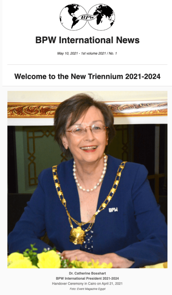 Der Newsletter von BPW International unter dem Namen BPW International News hat wieder ins Leben zurück gefunden! Die erste Ausgabe ist am 10. Mai 2021 versandt worden.