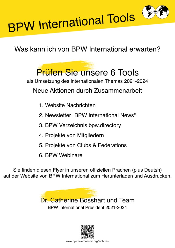 BPW International hat einen Flyer herausgegeben unter dem Titel „BPW International Tools“.